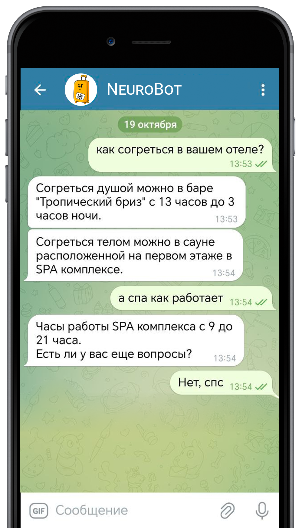 Нейросотрудник расскажет гостям об отеле, пришлет фото номеров и напомнит об акциях, а вы получите уникальную базу данных и снизите затраты на администратора.